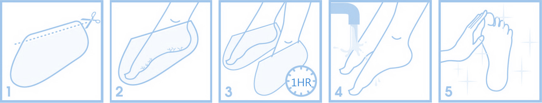 足膜的使用滲透建議90~120分鐘,慢慢的滲透進入老廢角質與正常肌膚之間的細縫,來達成效果。